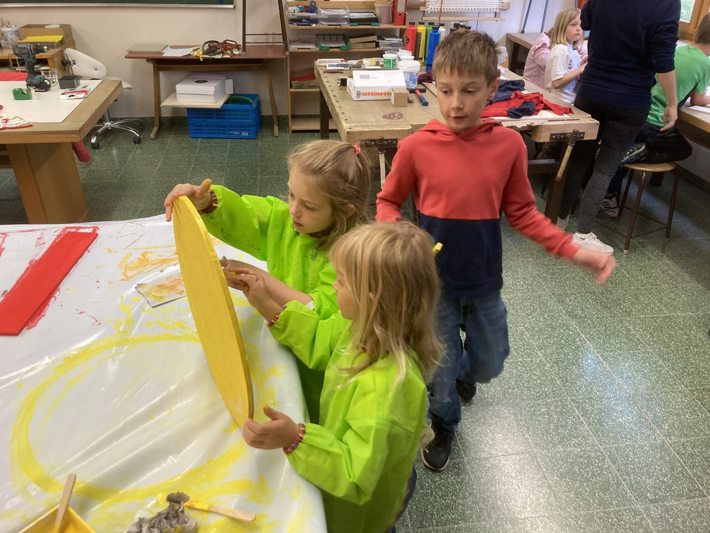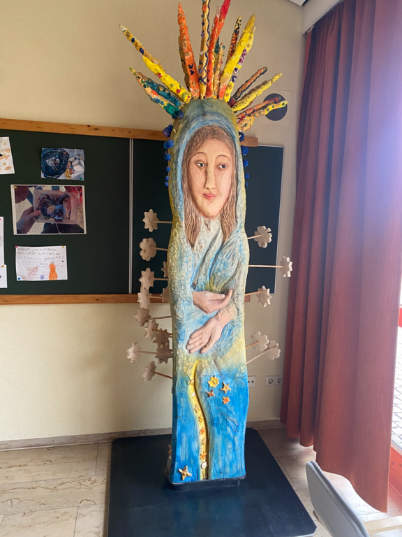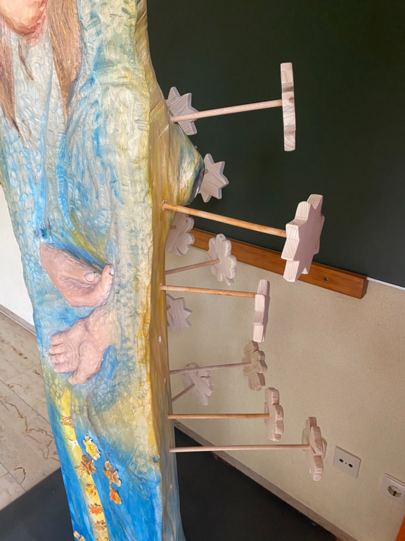 Im Schuljahr 2015/16 schnitzte die Künstlerin Heidi Weigl zusammen mit den Kinder der Klassen 1-4 eine "Trostfigur"