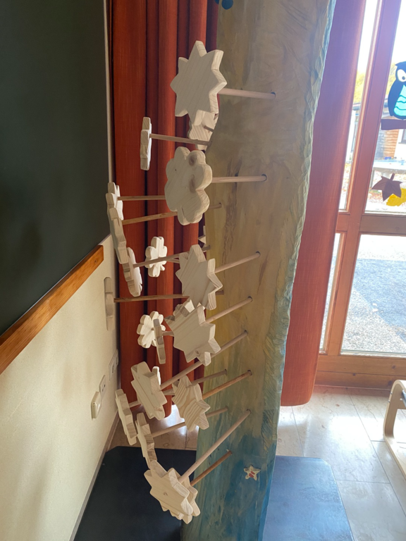Die Sterne und Kleeblätter werden jedes Jahr von Schülern im Rahmen des WTG-Unterrichtes aus Holz gefertigt.
